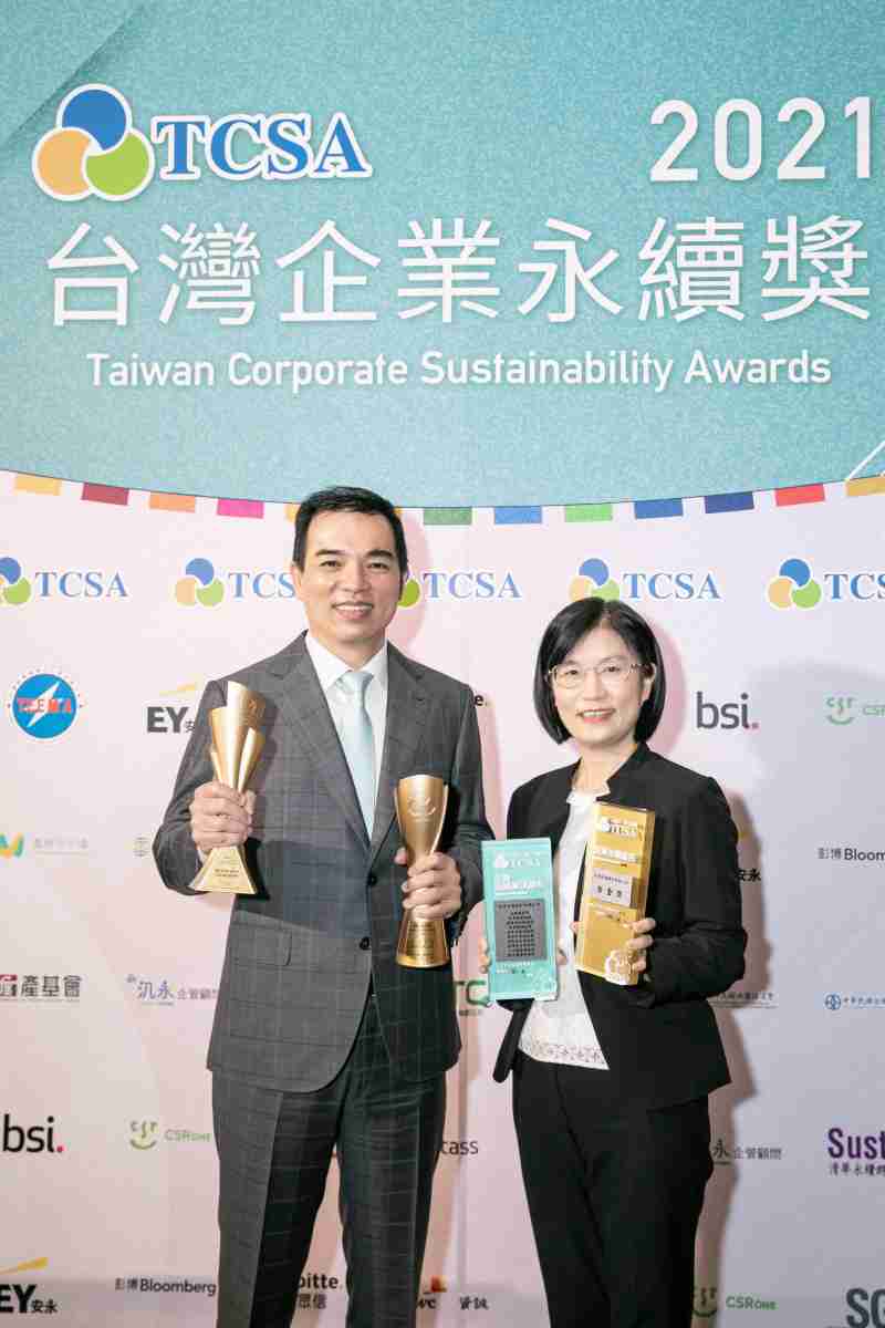 达在台湾永续奖所评比环境、、社会、、治理等各面向的永续绩效均获高度肯定 (左:z6mg·人生就是博光电总经理暨营运长柯富仁,,,右:z6mg·人生就是博光电永续长古秀华)